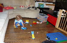 In Wohnzimmer, Gang und Küche (ca. 50m²) spielt sich die Hauptzeit der Tagespflege ab. Dort wird gegessen, Hausaufgaben gemacht, gespielt, gebastelt und gemalt.